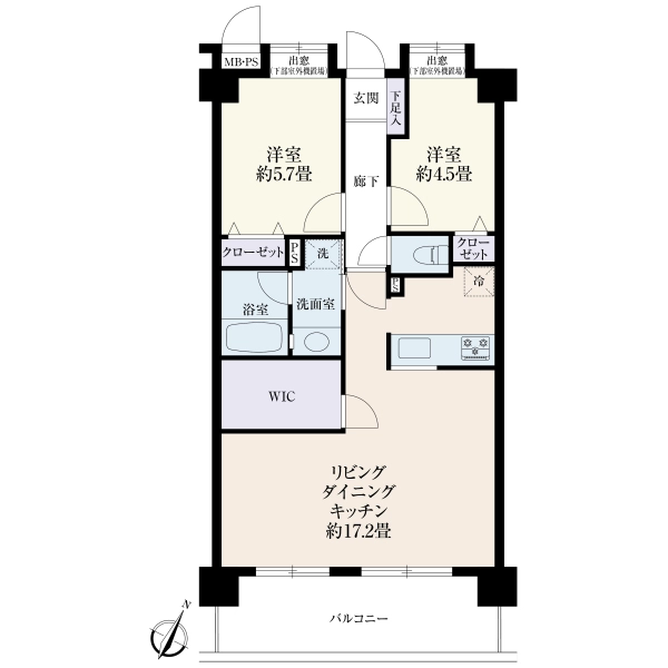 ◆北西・北東向きL字型バルコニーに面した2LDK