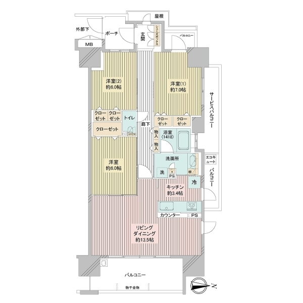 | 専有面積 | 85.42m² (25.83坪) 壁芯 | 築年月 | 1981年8月 |