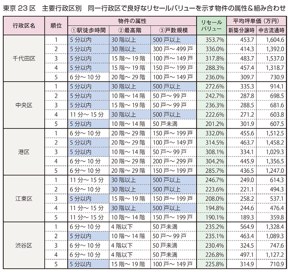 良好なリセールバリューを示す物件の属性&組み合わせ