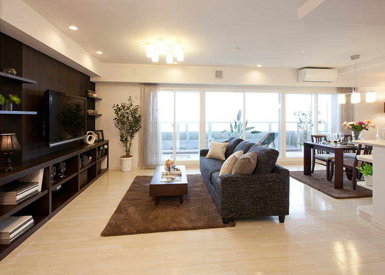 まず1つめは、一般的なホームステージングです。売却物件そのものに、ハウスコーディネーターや不動産会社が選定した家具・家電やラグ・カーテンなどを持ち込み、モデルルームのように演出します。家具類が配置された状態で住戸を直接見せられるので、購入検討者に住戸の魅力が伝わりやすい点がメリットです。