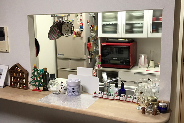 下の写真は、マンションのキッチンカウンターを撮ったものですが、小物で隠れた部分が多いため、シンクの形状や水栓の位置などが分かりにくくなっています。